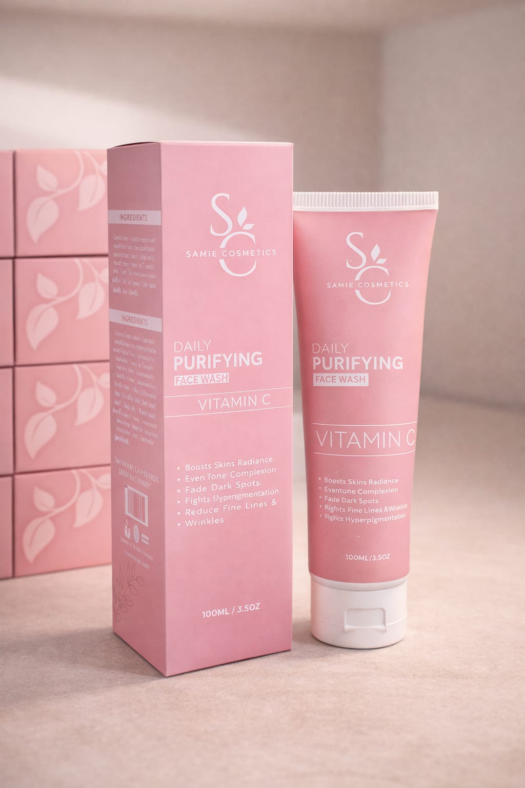 Apni skin ko dein daily luxury treatment Samie Cosmetics ke Vitamin C Daily Purifying Face Wash ke saath. Yeh premium formula gently skin ko cleanse karta hai, impurities remove karta hai aur skin ko fresh, bright aur healthy glow deta hai.